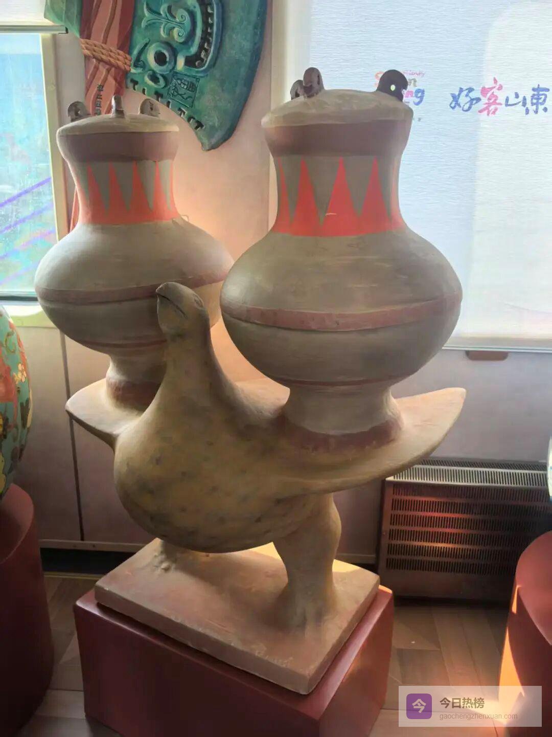 济南市博物馆馆藏:西汉彩绘负壶陶鸟