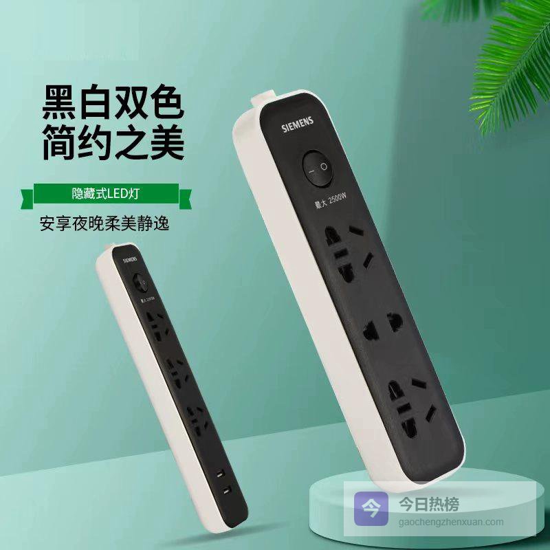 西门子插座智能家居插线板3插位双USB插排接线板学生手机电脑充电¥