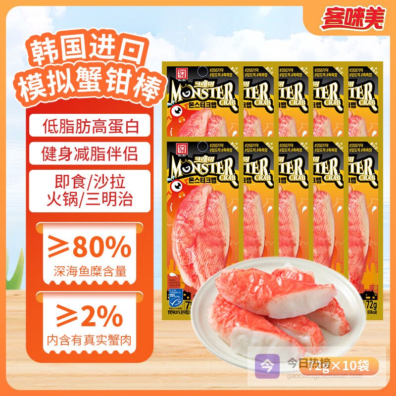 【京东自营】客唻美韩国进口模拟蟹钳棒蟹柳开袋即食蟹棒72g*10袋源头直发包邮¥