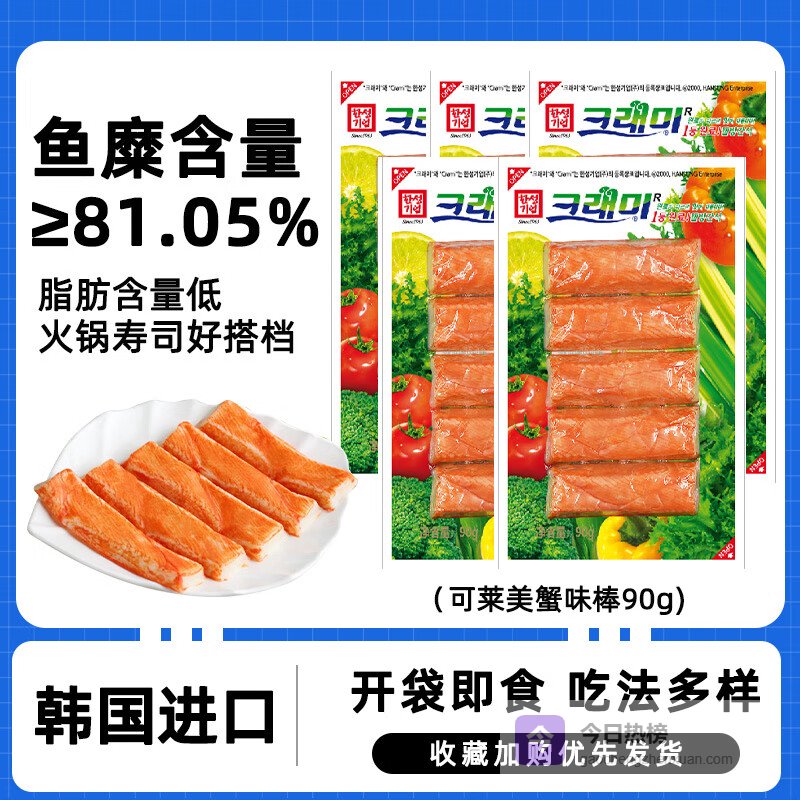 【京东自营】可莱美深海鳕鱼肉棒手撕蟹柳韩国早餐火锅食材开袋即食低脂90g*5袋¥