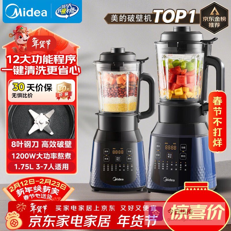 【京东自营】美的破壁机家用自清洗多功能全自动豆浆机1.75L预约加热榨汁辅食料理机3-5人金榜补贴年¥