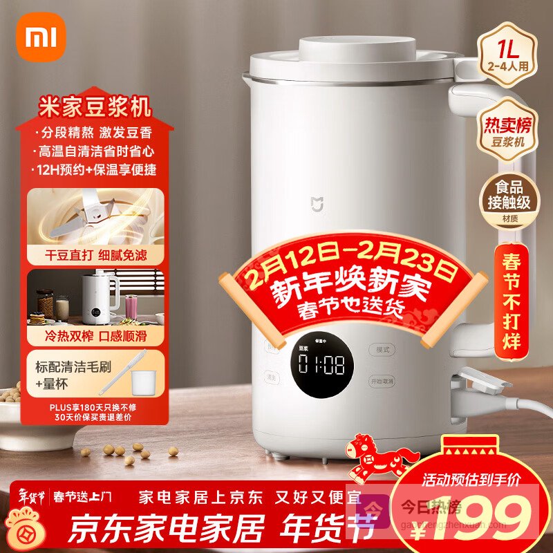 【京东自营】米家小米豆浆机1L轻音家用全自动多功能2-3人免煮免泡免过滤无渣破壁机12小时预约/保温¥