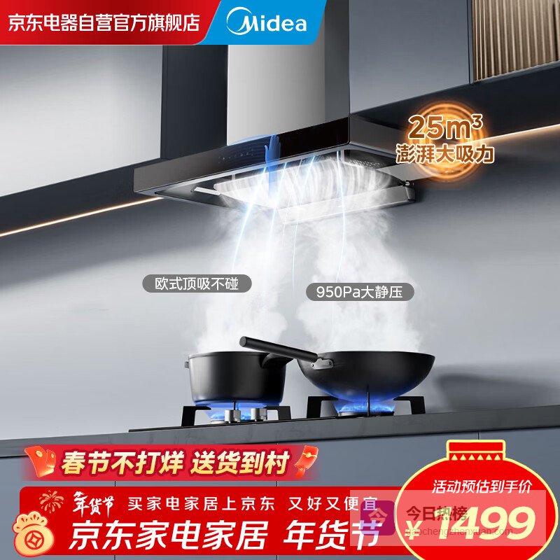 美的(Midea)家用油烟机欧式25立方大吸力950pa超强静压抽油烟机挥手智控APP智联一级能效吸油烟机¥