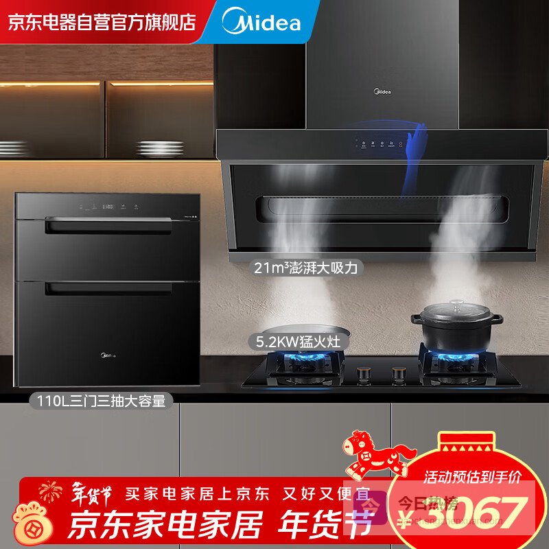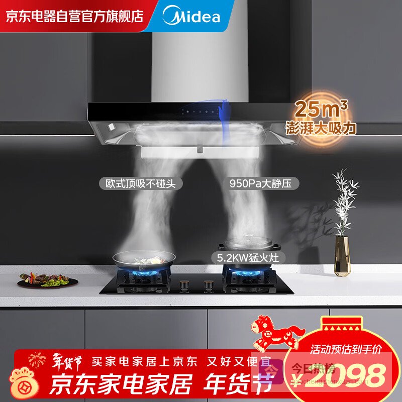 美的(Midea)家用油烟机顶侧双吸 21立方大吸力7字型挥手智控WIFI智联抽油烟机燃气灶 烟灶消套装 DP30¥