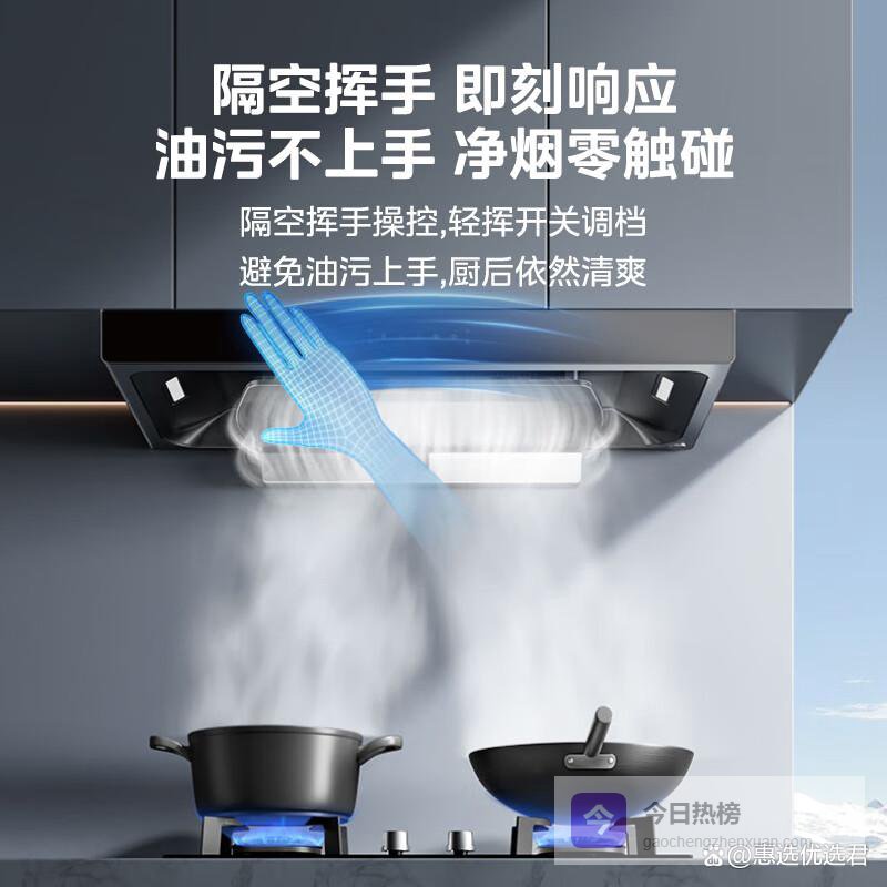 【挥手感应】只要在油烟机前挥挥手,它就能自动开启或关闭,不用碰面板就能操作,避免手上沾油油的糊弄清洁。这技术还挺方便,炒菜忙的时候不用跑到面板前按按钮,特别实用。