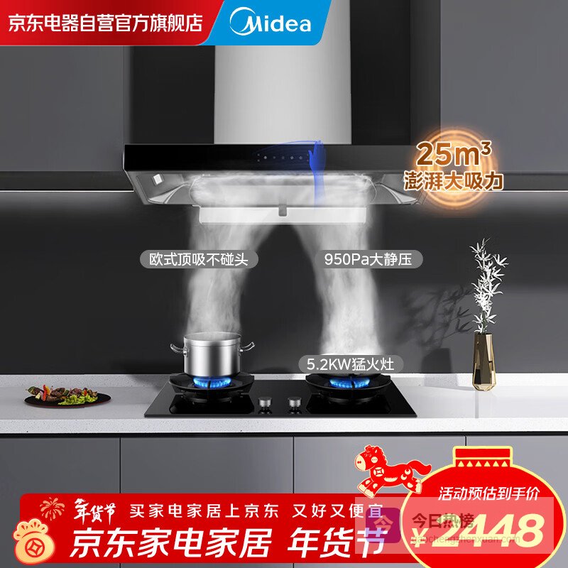 美的(Midea)家用油烟机欧式25立方大吸力950pa超强静压抽油烟机 挥手智控一级能效油烟机搭配Q529烟灶套装¥