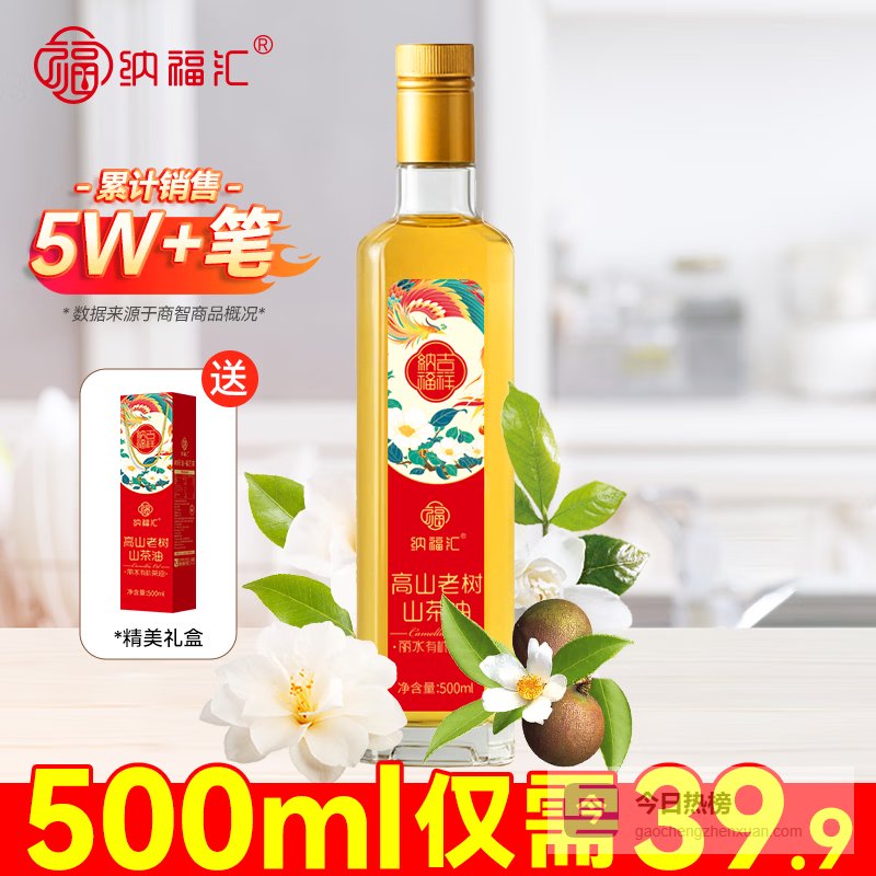 纳福汇山茶油500ml 高山老树茶油有机纯正茶树油压榨一级食用油家用礼盒¥