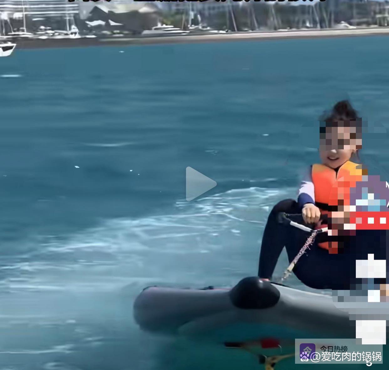 在很多人印象里,水上冲浪是一项对核心力量和平衡感要求极高的运动,哪怕是成年人,初次尝试也难免会摔得人仰马翻。但小酒窝却显得格外从容:她的腰背挺直,双腿稳稳地支撑在板上,随着海浪的起伏调整重心,全程没有出现任何失衡的情况。当牵引绳带动冲浪板加速时,她甚至还能笑着和镜头互动,那份淡定和自信,完全不像一个初次尝试水上运动的孩子。