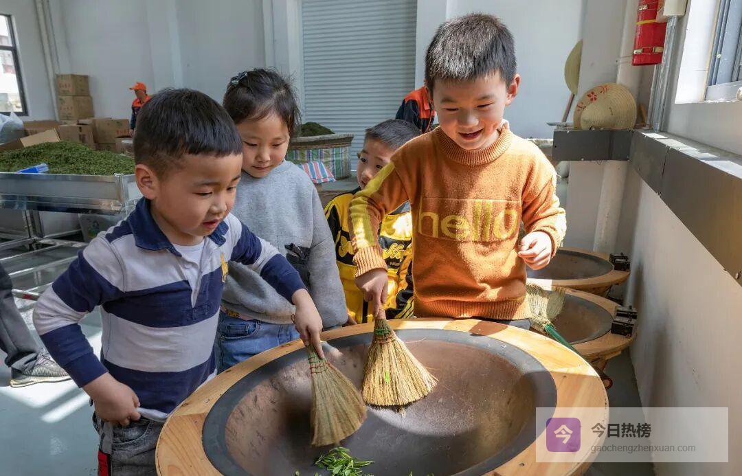 孩子们正在体验制作茶叶的乐趣 (供图 霍山县委宣传部)