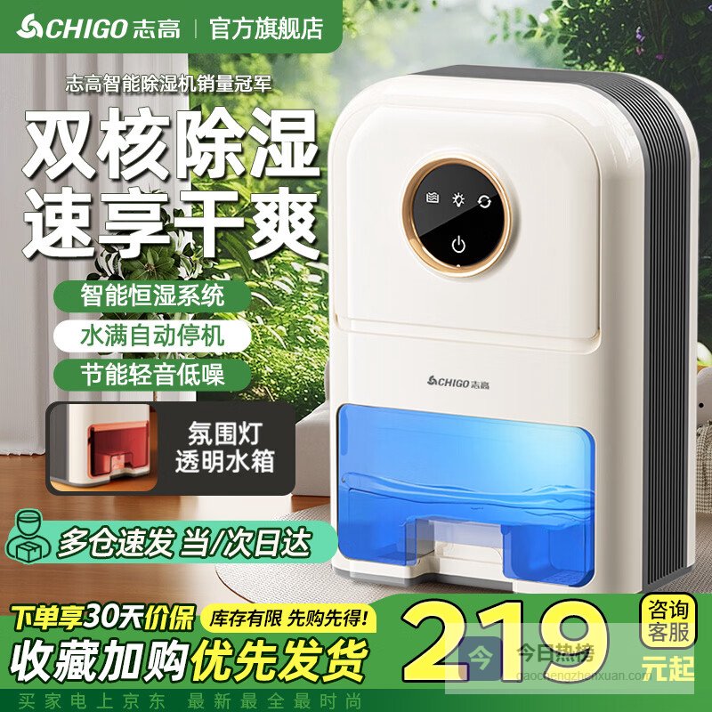 志高(CHIGO) 除湿机 家用抽湿机 除湿器净化一体机 卧室地下室干燥机吸湿去湿除潮防潮回南天除湿神器 2L/天 双核除湿¥