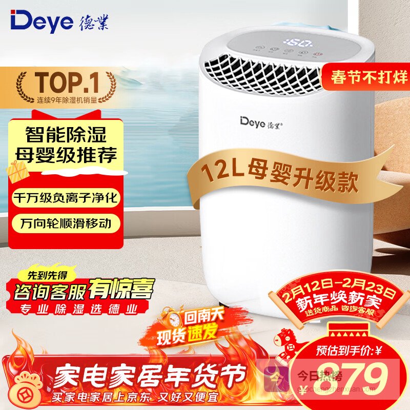 德业(Deye)除湿机/抽湿机家用卧室客厅卫生间轻音地下室干衣母婴除湿器干燥机银离子空气净化 12L/天 DYD-B12A3¥