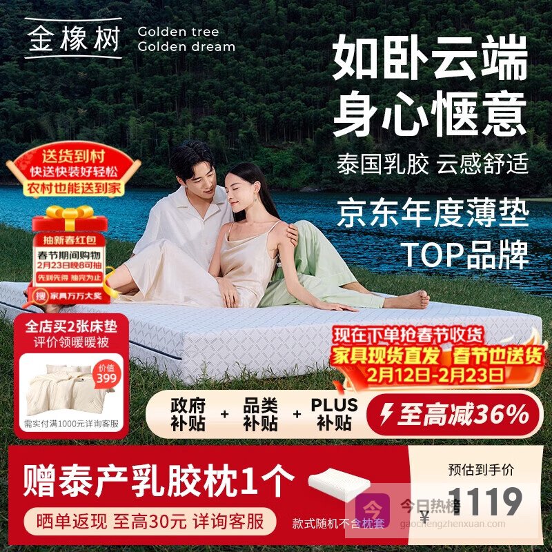 【京东自营】金橡树云端天然乳胶床垫舒脊泰国进口可定制榻榻米1.5*2米适中偏硬¥