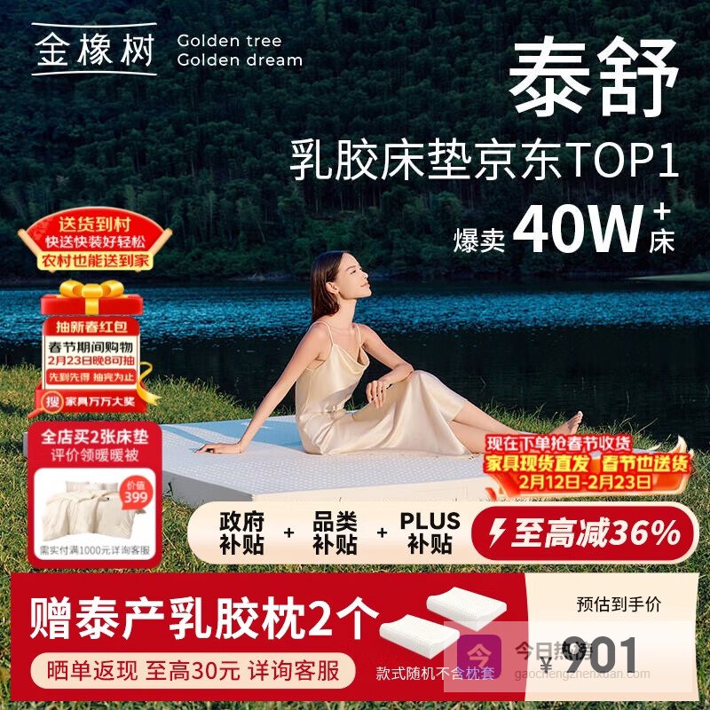 金橡树床垫哪款型号好?第一款:金橡树泰舒天然乳胶单人床垫 1.2米