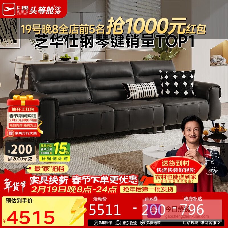 芝华仕(CHEERS)劳伦斯黑色真皮沙发客厅2025新款家用小户型政府补贴芝华士3139 【3.37米大四人位】可可棕 年后第一批发货(详询客服)¥