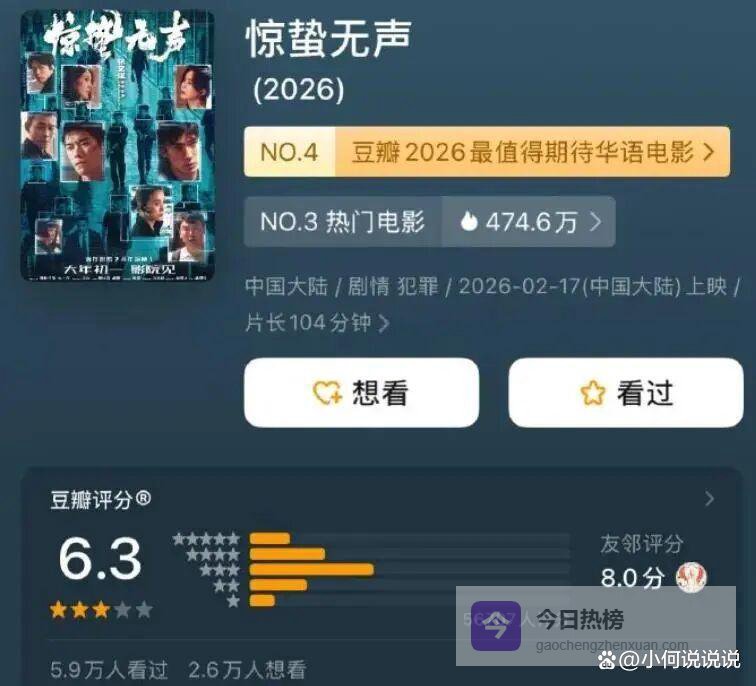 按照《惊蛰无声》又是名导又是影帝影后,又是85花的配置,口碑应该很有保障。怎么开分才6.3呢?