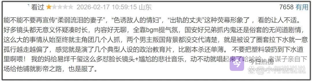 当然了,也有人觉得是导演和剧本不行。不少博主也开始吐槽,张艺谋好像把《惊蛰无声》拍成了《满江红》。