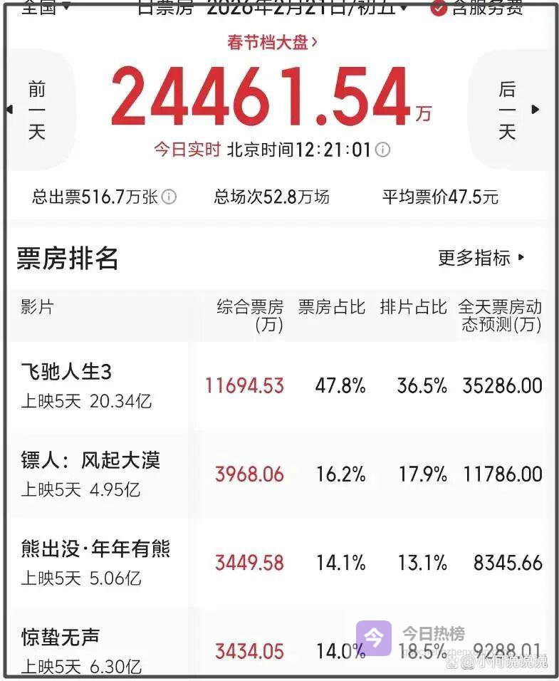没想到春节假期都过了一半了,春节档电影排名还在变化。张艺谋导演的《惊蛰无声》在大年初五,掉出日榜前三,被动画电影《熊出没》反超,就连评分也是目前春节档最低的,票房口碑双翻车,令人意外。