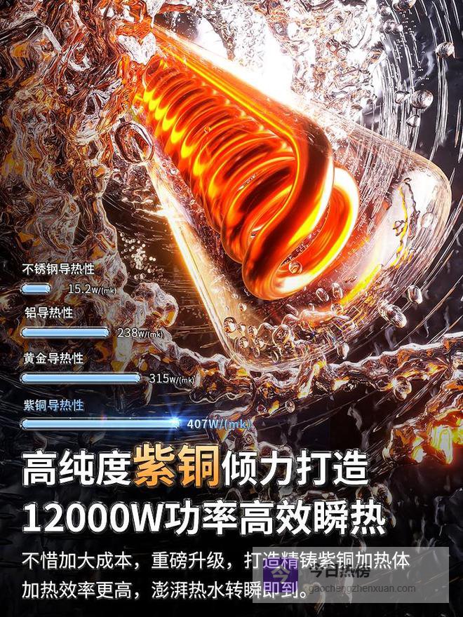 直到第三代紫铜内胆的出现,才真正解决了即热式电热水器的“痛点”。紫铜作为贵金属,天生就适合做热水器内胆:导热性极佳,能实现“即开即热”的快速响应,不用等半天;耐腐蚀性强,哪怕长期接触硬水,也不容易结垢、生锈;而且寿命远超不锈钢和铸铝,正常使用十几年都能保持稳定性能。