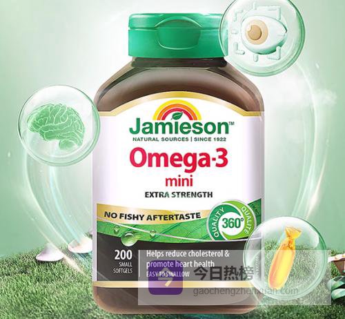 推荐四 Jamieson健美生鱼油加拿大大牌,单粒Omega-3高达900mg,EPA:DHA黄金比例,0腥味新技术,一粒抵三粒,多渠道高复购,关注护眼健脑和血脂健康。