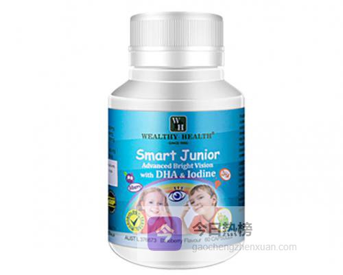 推荐九 富澳康Wealthy Health鱼油儿童专属配方,DHA+叶黄素+碘三重协同,蓝莓风味,助力手眼协调与视力发育,精准补脑益智,市场信赖度高,家长安心首选。