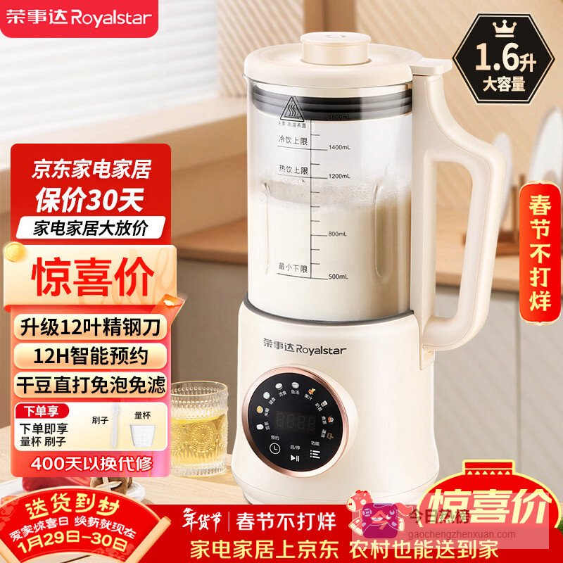 荣事达(Royalstar)破壁机家用豆浆机1.6L容量小型多功能免滤宝宝婴儿料理辅食机预约早餐榨汁机RZ-625B¥