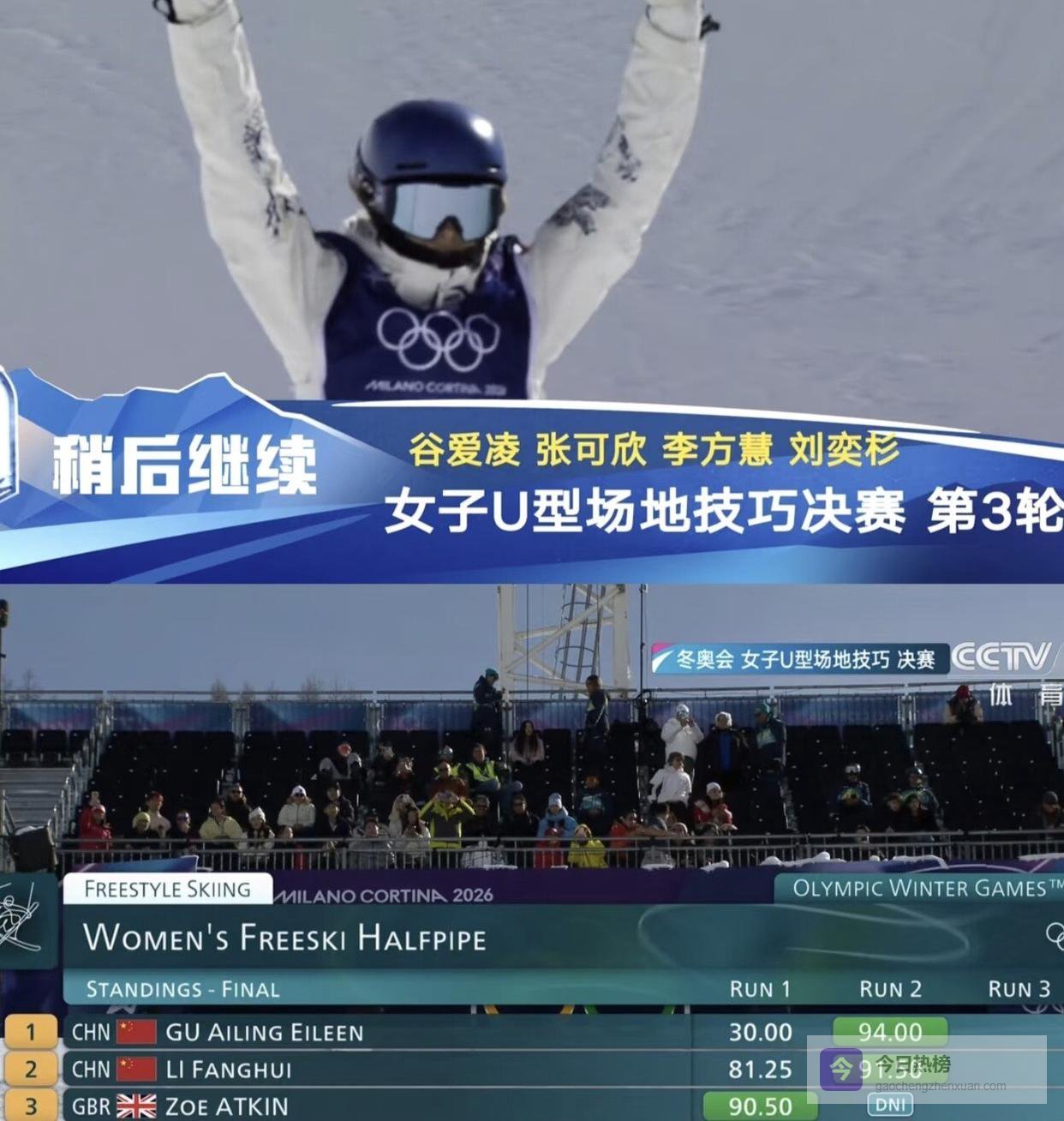 但这就是竞技体育的魅力,也是谷爱凌最令人着迷的地方。 第二轮,她仿佛换了一个人,所有动作高质量完成,腾空高度、转体角度、落地稳定性无可挑剔,一举拿下了94.00分! 这个分数让她从首轮后的中游位置,瞬间跃升至榜首。 与此同时,李方慧也稳扎稳打,将分数提升到91.50分,牢牢占据了第二的位置。 两轮过后,中国队已经形成了对金牌和银牌的“双保险”。