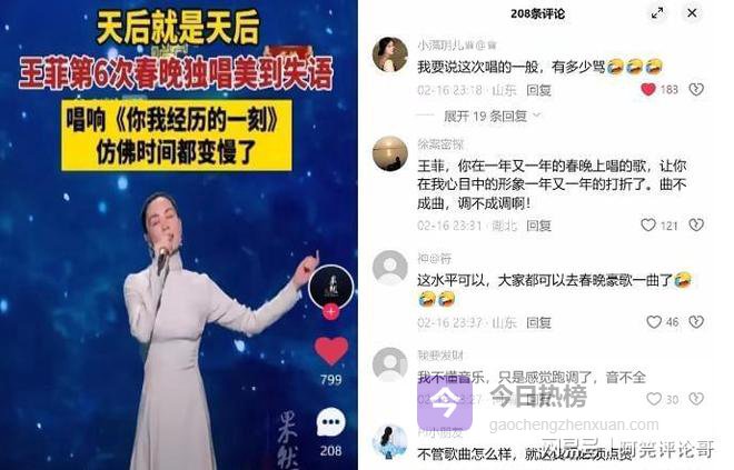 不少人先是质疑“王菲选歌不好听”,再是“王菲妆容显老”,后来连她戴的那对水滴耳环反光都能吵上热搜。