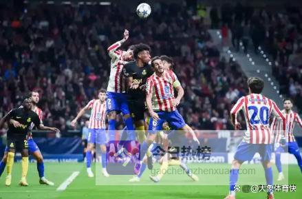 比赛的开局就充满了戏剧性。 由于首回合在客场与布鲁日战成3-3平,且欧冠已取消客场进球规则,双方回到了绝对的同一起跑线。 任何一方的进球都可能瞬间改变整个系列赛的走向。 第23分钟,比赛的平衡被一次看似简单却极其高效的进攻打破。 马竞门将扬·奥布拉克在后场直接大脚开球,皮球飞跃半场,精准地找到了前场的瑟尔洛特。