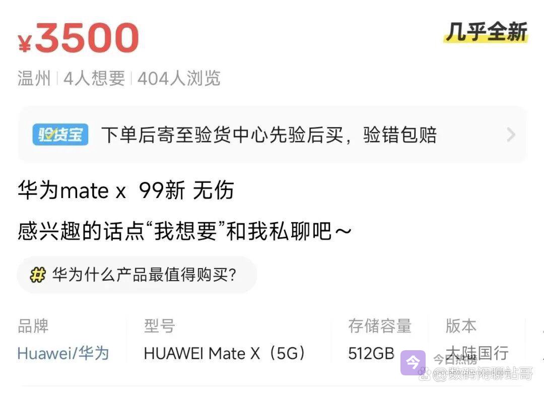 最近有个挺有意思的现象,华为新出的Mate X6卖得火热,可偏偏有些老花粉不走寻常路,扭头去淘2019年发布的初代Mate X。这机子当年首发16999元,现在二手平台3500元左右就能拿下,差价确实让人心动。