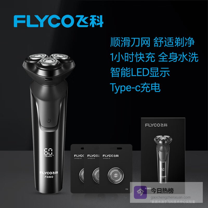 飞科(FLYCO) 电动剃须刀男士刮胡刀电胡须三刀头快充干湿双剃节日礼物礼盒FS903送男友送老爸年会奖品年货礼物 FS903标配 3个原装刀网¥