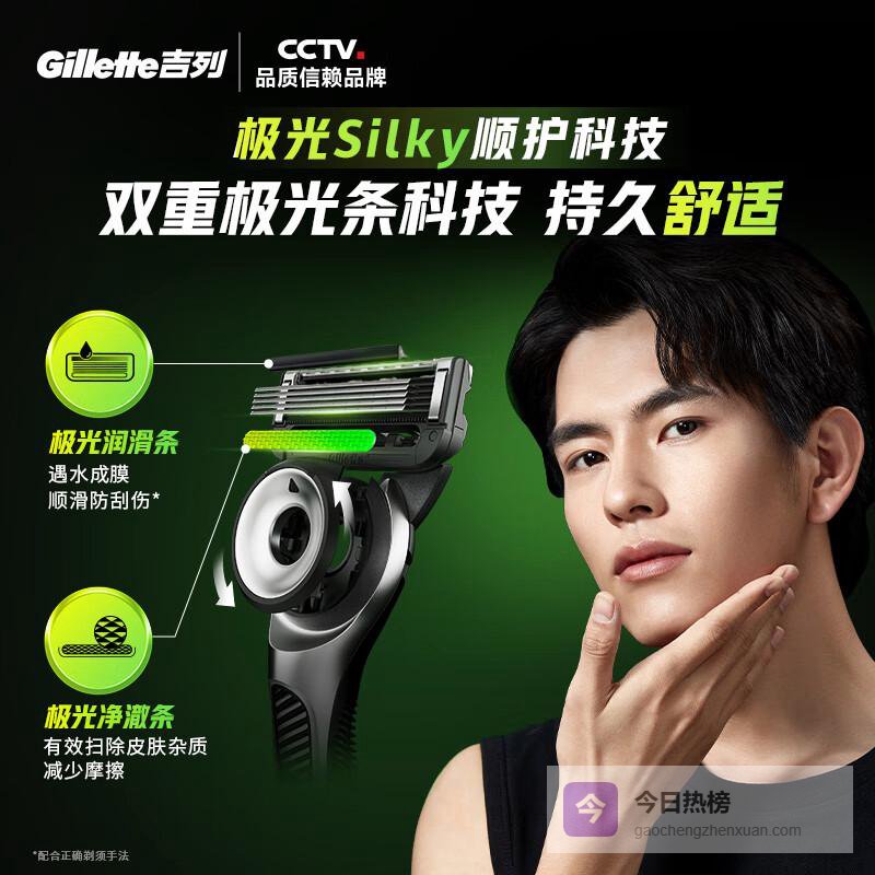 2、持久耐用,5年质保:别看它小巧便携,其实耐用性超群!吉列承诺5年质保,刀片采用顶级材料,加上极光Silky纳米级5层刀片设计,刀尖只有发丝的1/1000那么细,持久耐用,无惧磨损,让你用得放心,省心。
