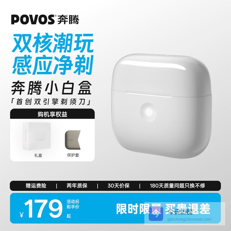奔腾(POVOS)小白盒双引擎剃须刀电动男士智能感应便捷式迷你刮胡刀全身水洗T002送男友送老公父亲节礼物 小白盒【T002】 单机热销款¥