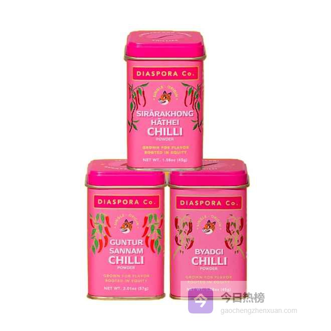 通过 Diaspora Co. 的热辣三重奏 让你的烹饪更上一层楼,里面有三种独特的香料。Byadgi 辣椒是其中最温和的,带有鲜美的风味,而 Sirārakhong Hāthei 辣椒的味道像是墨西哥的烟熏辣椒。最辣的 Guntur Sannam 辣椒则带有番茄的风味,非常适合做汤和酱。