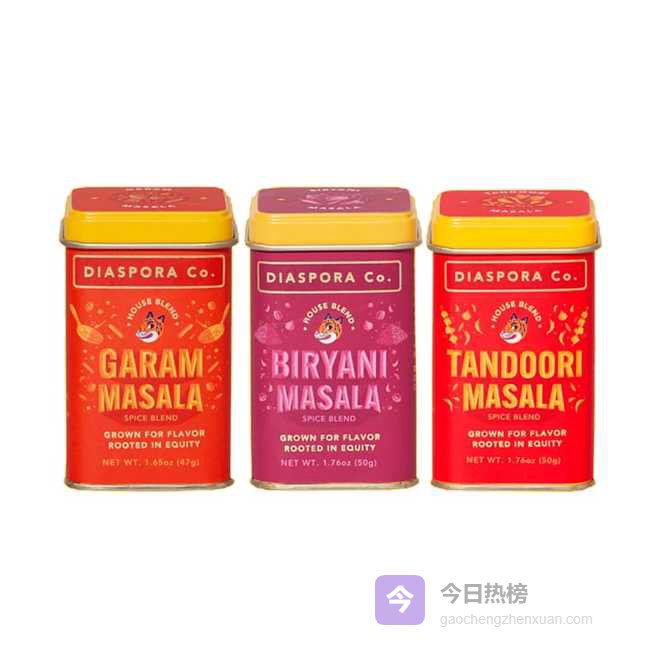这款马萨拉调料三件套是了解Diaspora Co.产品的好选择。里面有加拉姆、比尔亚尼和坦杜里调料,让你做出美味的咖喱、肉类和扁豆菜肴。