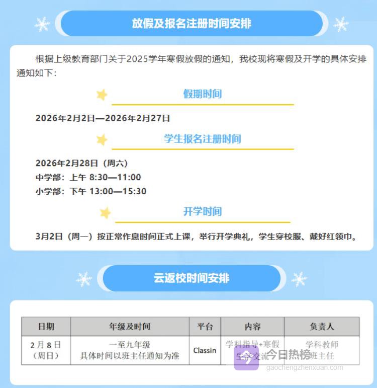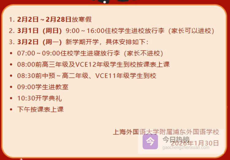 提前返校!各校安排出炉开学在即,根据此前各校发布的寒假放假安排,不少学校的返校时间也早已确定。大多数学校返校时间提前在2月27日、28日,还有一部分学校选择在3月1日错峰返校,到3月2日就都开始正式上课了。上海市静安小学