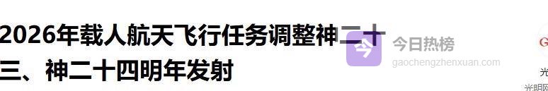 光明网——2026年载人航天飞行任务调整神二十三、神二十四明年发射2025-11-27