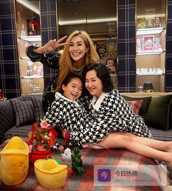这回在饭桌上,何超盈还亲自上手给大家分餐,显得还挺懂事和贤惠的,何超琼则陪着辛阡觅玩闹,一会儿举百福图,一会儿陪她拍照,笑声在豪宅里回荡,画面特别温馨。