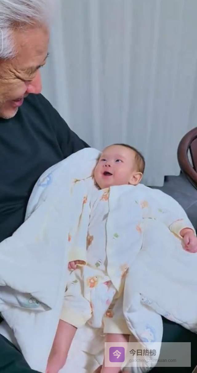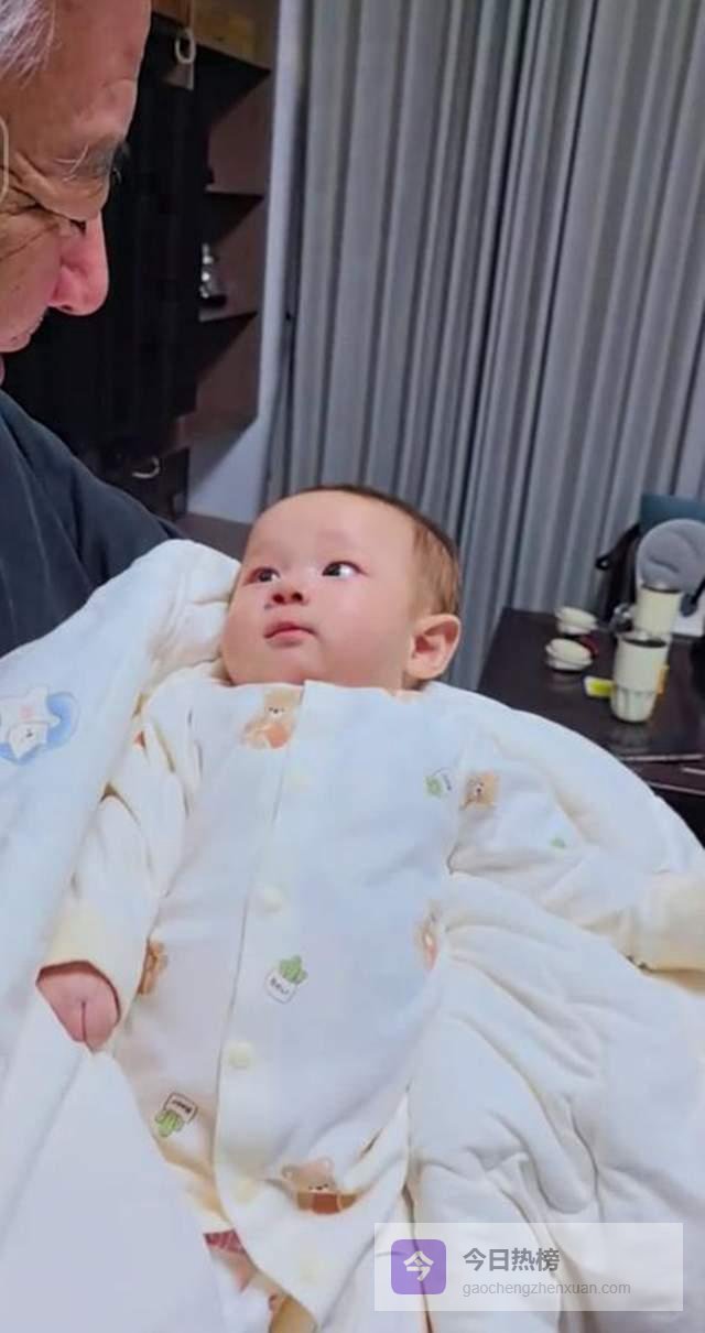 对于温柔注视着自己的爷爷,怀中的小孙子似乎也能感受到来自爷爷的爱意,抬头望向颜世魁的他眼神清澈明亮,脸上满是笑意,一双小手自然垂放,整体状态安详,看起来很享受来自祖辈的怀抱,而从小孙子五官来看长得还挺像颜世魁。