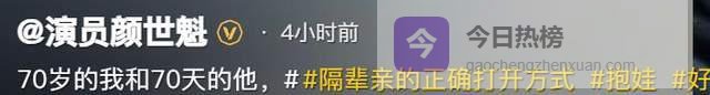 不过,在2月27日,颜世魁罕见在个人社交平台晒出一张抱娃照,他还配文写道:“70岁的我和70天的他”,此外,颜世魁还加了“隔辈亲的正确打开方式”“抱娃”等词条,由此可见,颜世魁抱着的是孙辈。