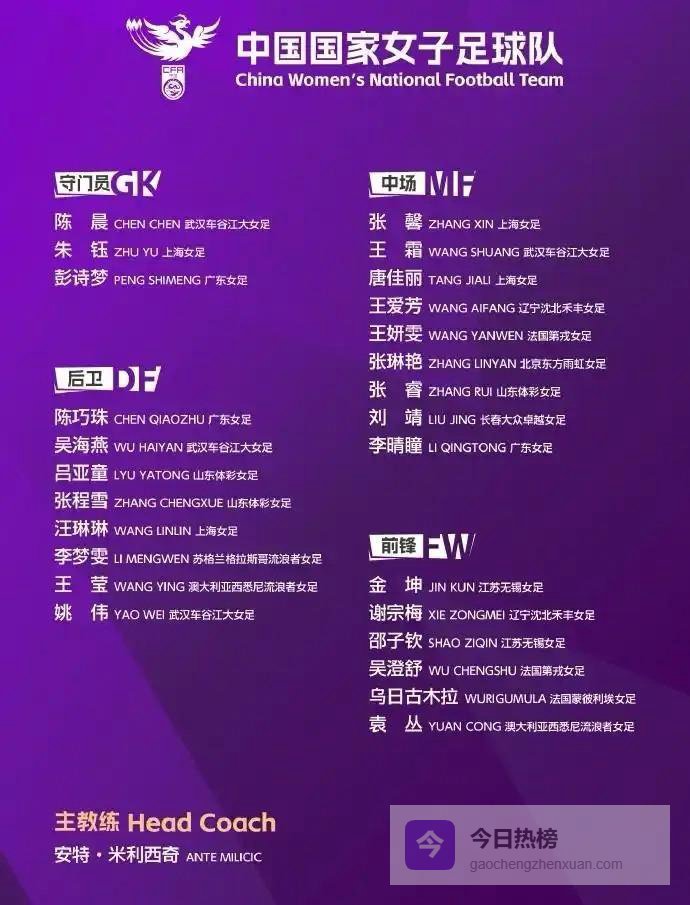 对于山东球迷而言,在欣赏中国女足表现的同时,不妨关注一下三名来自山东女足的球员,她们分别是20号张程雪、25号吕亚童和26号张睿。