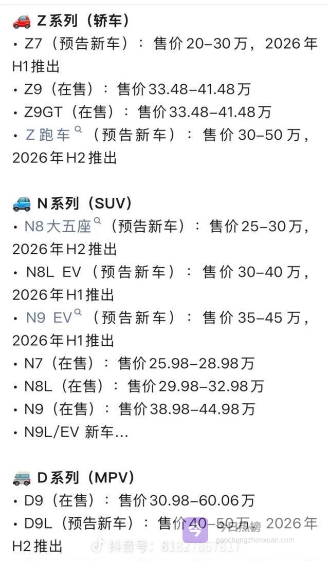 此次新车计划的曝光,也让腾势 2026 年的市场攻势逐渐清晰。在新能源市场竞争日趋激烈的当下,腾势以密集的新车发布和车型改款为抓手,持续强化产品力,通过对现有热门车型的升级,稳固市场份额,同时凭借全新车型的推出,开拓新的市场空间。而从车友的热议程度也能看出,腾势的产品布局精准击中了消费者的需求,新款 Z9GT 的升级、N8L 的改款,都成为市场关注的热点,也为腾势 2026 年的市场表现奠定了良好的基础。