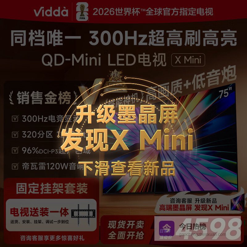 Vidda X Mini 海信电视 75英寸 超高刷QD-Mini LED【送装一体版】以旧换新家电国家补贴液晶电视¥