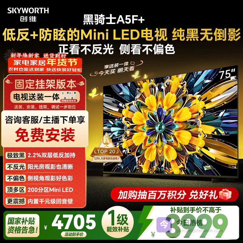 创维电视A5F+ 安装版【固定挂架送装一体】75英寸低反防眩Mini LED电视机 液晶智能平板4k游戏¥