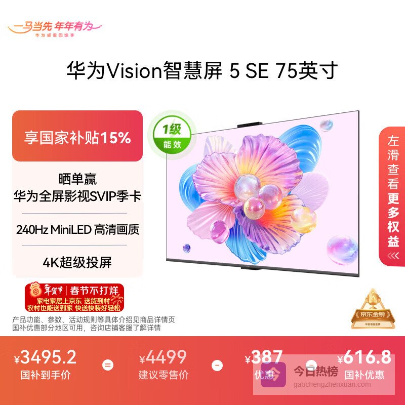 华为Vision智慧屏 5 SE 75英寸 鸿蒙AI搜片MiniLED鸿鹄画质 一级能效国家补贴投屏平板电视机HD75KULU¥