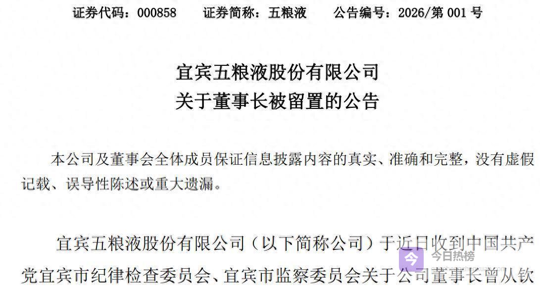 五粮液突然宣布,公司董事长曾从钦被立案调查,并采取了留置措施。