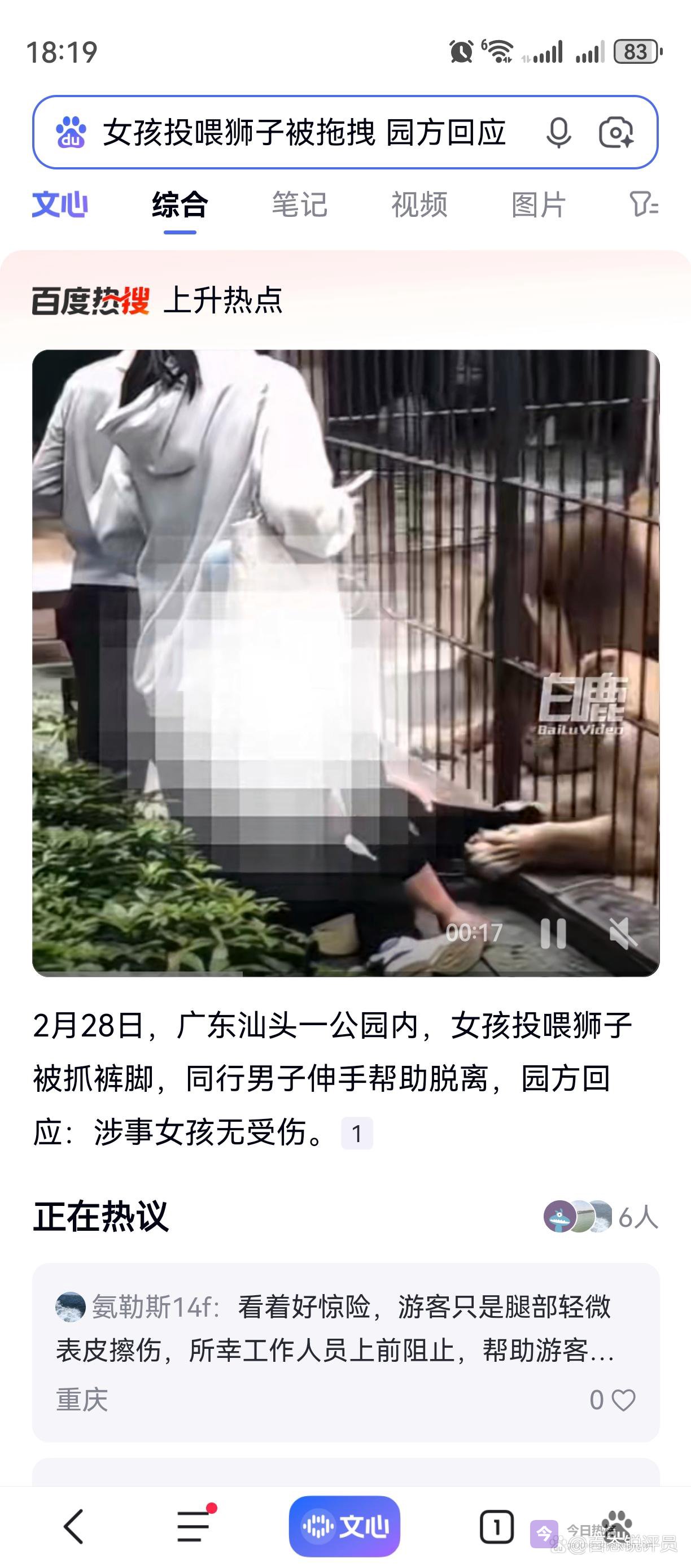 2026年2月28日,广东汕头中山公园动物园发生惊险一幕。一名10岁女童在投喂狮子时,被狮爪抓住裤脚拖拽倒地,经陪同人员与工作人员及时施救,女童仅受轻微擦伤,事件视频迅速引发全网热议。