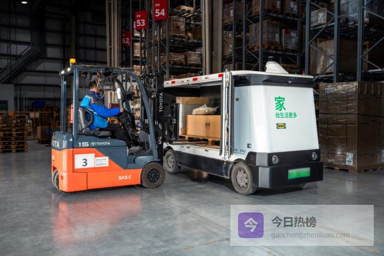 目前无人车在宜家主要承担门店补货及订单转运任务,后续或许拓展“店到宅”场景。图源 英格卡集团