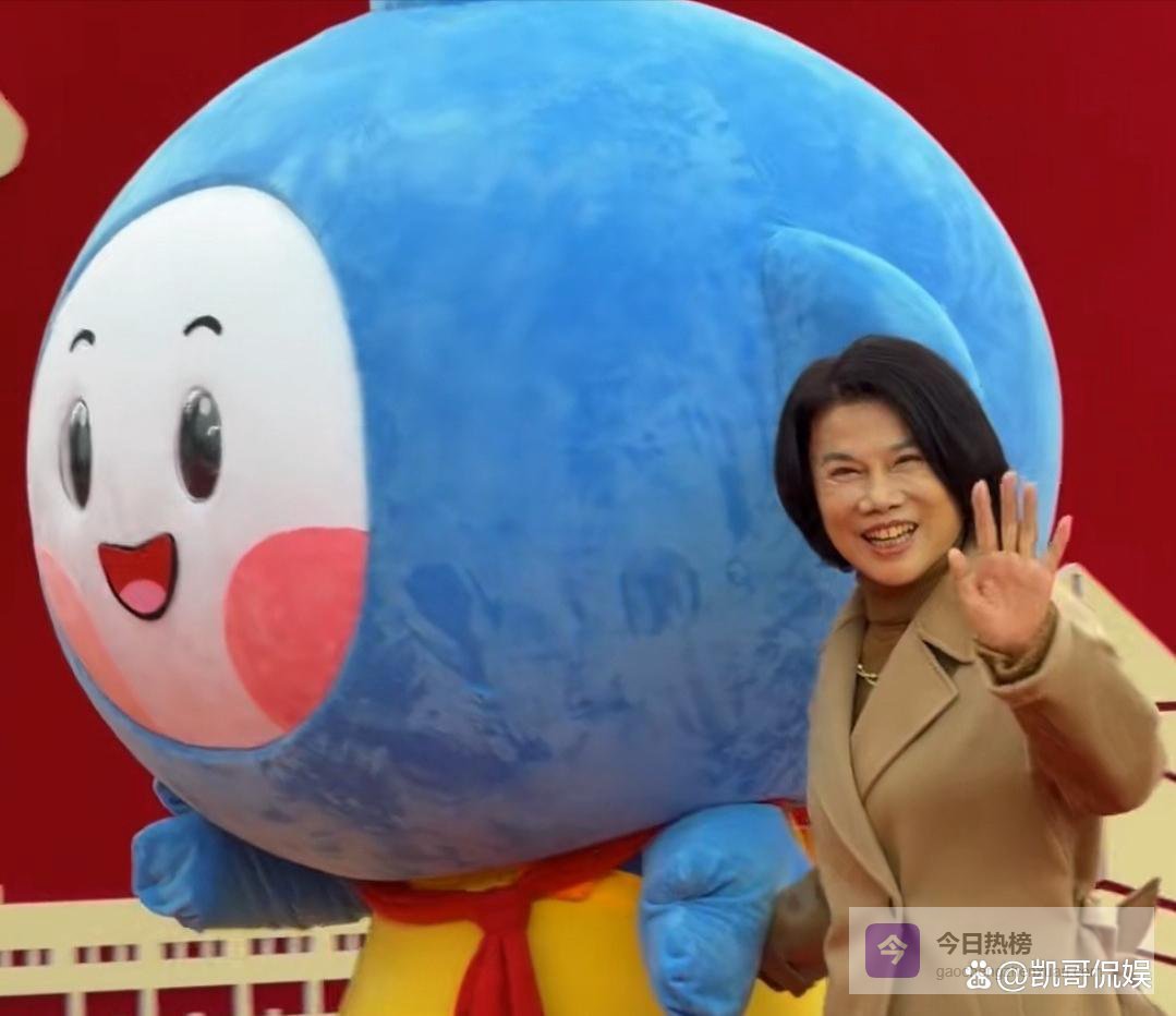 她携手格力卡通代言人“格仔”登场,精神头儿十足,没有刻意迎合红毯礼仪,全程热情地向观众挥手打招呼。