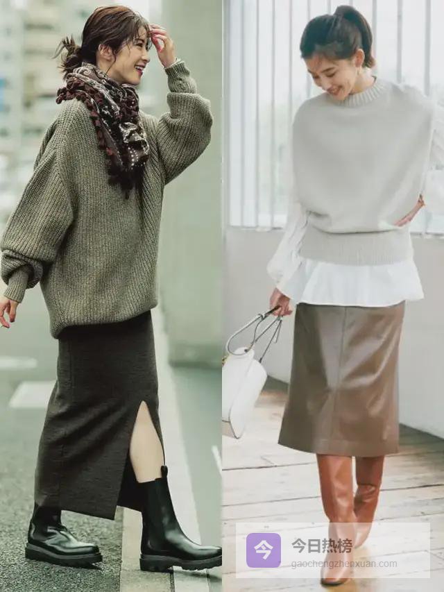 若是偏爱沉稳大气的穿衣风格,直接选择浅灰色的毛衣背心,叠穿白色衬衫和一条棕色的直筒半裙,脚上大地色的中筒靴,这样的穿搭利落又有气质。