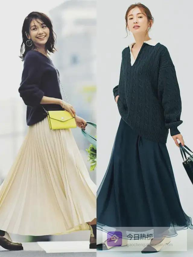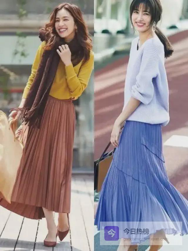 春日穿它,想要别致又有氛围感,鹅黄色针织毛衣最是吸睛,搭配大地色百褶伞裙,脚踩一双同色系的浅口高跟单鞋,温暖明亮,优雅大气。